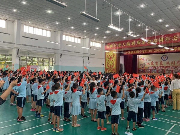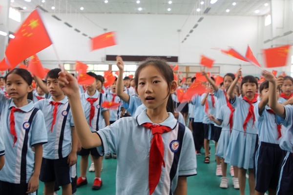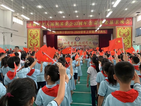 最后,全校師生合唱《我和我的祖國》,大家搖動手中的鮮紅的國旗,深情唱出對祖國的熱愛與眷戀。圣獅小學2019學年第一學期開學典禮在悠揚的歌聲中落下帷幕。