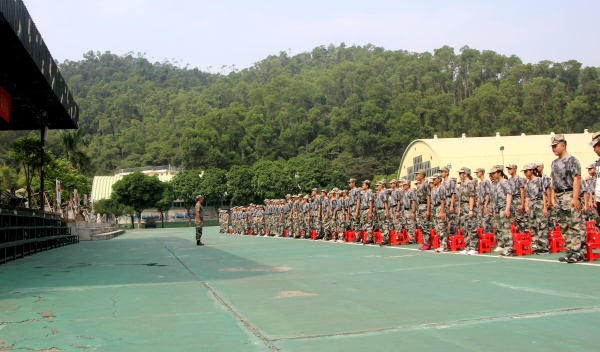 為培育艱苦奮斗精神、增強國防觀念、把握軍事常識、激發愛國熱情,2019年10月28日上午,中山市東鳳鎮理工學校高一級新生軍訓開營儀式在中山國防教育訓練基地舉行,中山國防教育訓練基地訓教部部長鄧海強、東鳳理工學校副校長鄧先泉、德育處主任羅美意、團委書記楊敏、團委副書記龐安錦、高一級級長劉德雄以及班主任老師出席了儀式。