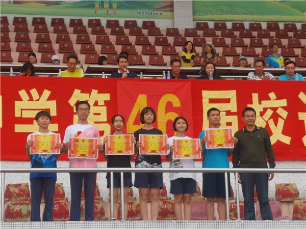 下午三點半,徑賽第一槍正式響起。隨后,其他競技項目陸續展開,在一天半的時間里,全體運動員奮力拼搏,力爭上游,盡情演繹著更高更快更強的體育精神,書寫著用汗水澆灌的可歌可泣的精彩瞬間;觀眾席每一次吶喊,每一聲加油,都盡情展現各班級的凝聚力和向心力,譜寫著由集體榮譽引領班級不斷向前的壯麗詩篇;志愿者們、裁判員老師們、班主任們忠于職守,忘我工作,為運動會的順利進行保駕護航;親子運動項目拉近了學校和家庭的距離,增添了親子感情;教職工開展的趣味運動,給運動會的圓滿召開增添了一道亮麗的風景線,全體學生為自己的老師吶喊助威,展現了和諧的師生關系,凝聚了師生情感,書寫了最美運動會的動人華章。