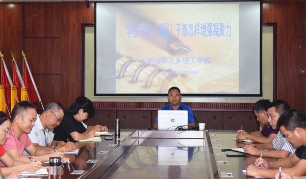 10月24日下午,三鄉理工學校舉辦了“中層(基層)干部能力提升”專題學習會議,學校黨總支書記、校長劉偉思主持會議并授課,學校黨總支委員、行政、各黨支部書記、基層干部參加學習會議。
