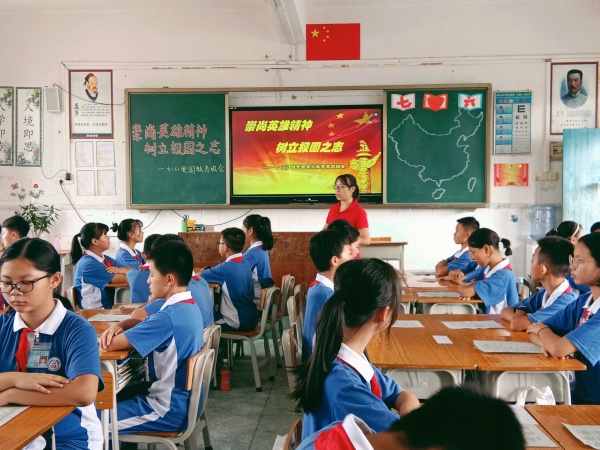 為慶祝中華人民共和國成立70周年,弘揚愛國主義精神,引導廣大中學生銘記英雄、崇尚英雄、捍衛(wèi)英雄、關(guān)愛英雄、學習英雄,珍惜來之不易的和平生活,將自身的理想與祖國的發(fā)展相結(jié)合,樹立報國之志,為實現(xiàn)中華民族偉大復興中國夢貢獻自己的一份力量。平東學校于10月23日舉行了“崇尚英雄精神,樹立報國之志”愛國主義主題教育班會課活動,由七(6)班方曉紅老師執(zhí)教。