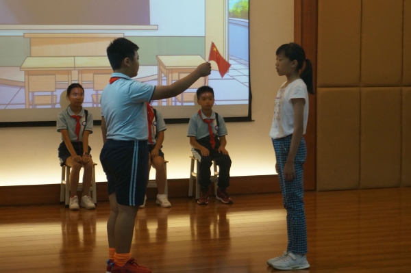 最后,何溥彥輔導員對本節隊活動課進行點評,肯定了隊員們此次活動的成功,希望隊員們在此次隊課中有所收獲,學好榜樣,爭做愛祖國、愛人民的新時期好少年!此次隊活動課在莊嚴的隊儀式下落下帷幕。我們相信,隊員們在此次活動中收獲到的愛國之情在隊員心目中是久久不能忘懷的。
