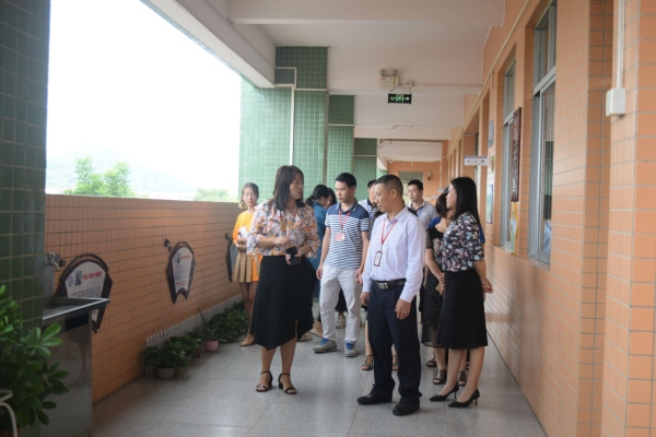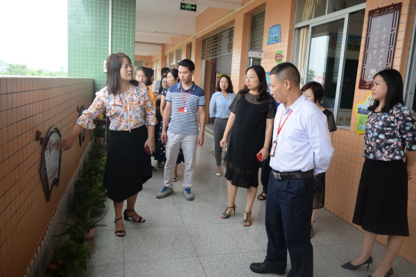 首先羅柳副校長帶著督導小組參觀了學校整潔優美的校園環境,并一一介紹了校園文化建設、教學樓道建設的特點,接著由德育主任楊江鳴介紹了初中部教學樓樓道建設的特點,每走過一個樓層時都能聽見督導小組的成員對大涌旗風學校文化布置的贊賞。隨后集中于會議室,先由南區德育專干李亞利進行了簡單的介紹后,接著蕭若瑜專干也一一介紹了大涌旗風學校的老師。隨后由羅柳副校長就學校近年辦學理念、辦學常規、教研教改及校園特色文化建設等多項工作及取得的成績進行了簡單的匯報,從“寓德育于管理之中的抓組織領導”到“寓德育于隊伍建設之中的師德師風建設”到“寓德育于課程管理之中德育課程標準”然后到“寓德育于活動之中的踐行社會主義核心價值觀”再到“寓德育于特設校園建設之中的走特色辦學之路”最后就是“德育經費,渠道暢通、經費充足,保障供給”,德育是有擔當的生活教育,各校區堅持以德育特色為引領,著力良好的德育環境建設。讓學生們為有理想、有道德、有文化、有紀律的、德智體美勞全面發展的新一代小學生。精彩的匯報贏得在場各位領導的陣陣掌聲。