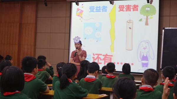本次研討活動先由劉紫芹老師執教三年級《森林聽證會》和謝堅云老師執教四年級的《這樣想象真有趣》。劉紫芹老師教學注意激發學生的興趣,猜謎語引入新課,通過模擬一場森林聽證會,學生角色扮演,代入情境,讓學生在交流討論中放飛想象,清楚合理表達。學生在積極參與課堂學習的過程中能夠領悟童話的編寫既需要大膽想象也需要表達有序。謝堅云老師以“哆啦A夢”的百寶箱導入,激發學生想象,通過看人物猜故事,鼓勵學生奇妙想象,讓學生在愉快輕松的環境下學習,學生在謝老師的引領下能夠發散思維,不少學生能夠有自己的獨特想象,落筆成文。