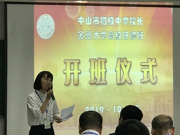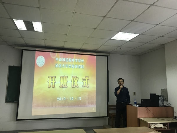 “養天地正氣、法古今完人”,2019年10月12日,美麗的蘇州大學迎來了40余位來自廣東省中山市初級中學校長高級研修班的學員,組織者希望借助蘇州大學這一全國知名平臺,通過專家講座、現場教學、浸潤式跟崗學習交流三大階段,以豐富的學習形式,整體推進中山市初中校長隊伍的專業成長,是繼2004年后中山市教體局為全市初中校長組織的又一次外出集中培訓活動。