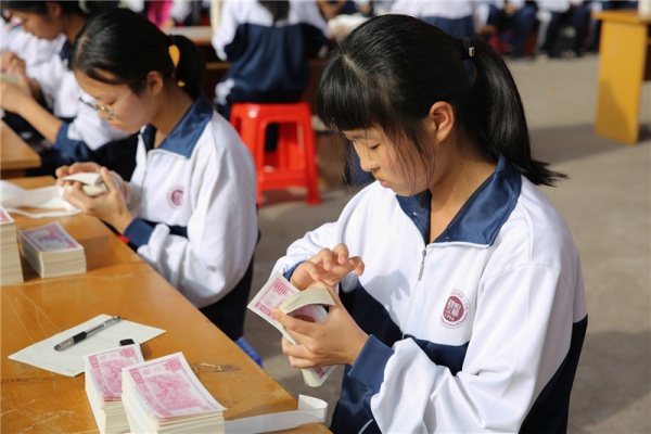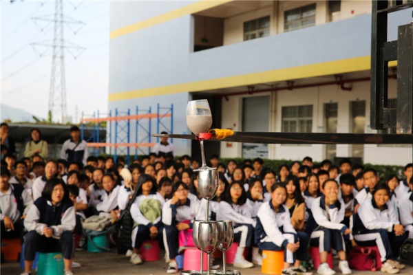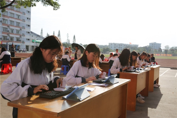 修德載志當自強,精技渡遠做棟梁。商貿專業合唱小分隊的學生以一首《鄉渡遠方》拉開序幕,來自四方的莘莘學子以歌唱校歌的形式表達了對鄉渡校園文化的詮釋。接著物流服務與管理專業的學生展示精致嫻熟的叉車作業技能,四名同學分工合作,對貨物進行層層疊放,喻意“步步高升”。國際商務專業(會計方向)的學生緊接著出場,13名女生,以花式多樣的手法、令人眼花繚亂的速度,分別以單張單指點鈔法及多指多張點鈔法展示了她們勤學苦練多年的熟練點鈔技能,贏得場外觀眾的陣陣掌聲。