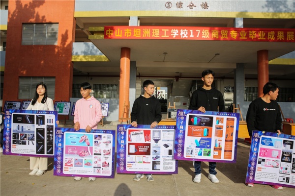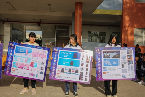 為展示2017級商貿專業在校三年的學習成果,同時激發2018級、2019級學生的學習積極性,1月6日下午,中山市坦洲理工學校商貿專業2017級畢業成果展在上善樓前廣場隆重舉行。成果展示會以商貿三大專業(電子商務、國際商務、物流服務與管理)專業技能展示為主,由電子商務班班主任陳月霞老師主持。