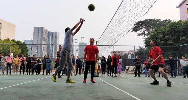 為創(chuàng)造元旦熱鬧的新年氣氛,進(jìn)一步豐富教職工業(yè)余文化生活,培養(yǎng)教職工的團(tuán)結(jié)合作精神,展示大家良好的精神面貌,從2019年12月中旬至2020年1月初,中山市東區(qū)中學(xué)工會(huì)組織了一場(chǎng)“跨年”的教職工氣排球比賽。此次比賽以小組賽的形式,共有6支隊(duì)伍參加,比賽分為初賽和決賽兩個(gè)階段,采用了體育科組制定的比賽規(guī)則。在初賽中,隊(duì)員們奮力拼搏,團(tuán)結(jié)協(xié)作,相互鼓勵(lì),精彩的賽事讓全校師生大飽眼福,最終數(shù)學(xué)科組和政史地綜合組兩支隊(duì)伍成功進(jìn)入冠亞軍決賽。