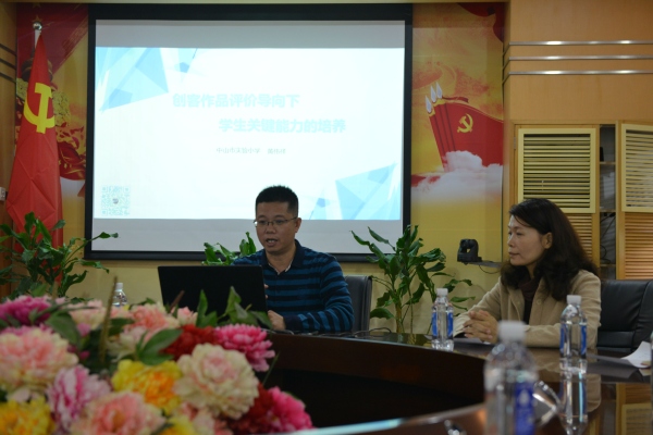 隨后,兩校老師來到中山市實驗小學會議室進行進一步探究。黃偉祥主任作了《創客作品評價導向下學生關鍵能力的培養》的專題講座,他從優秀創客作品標準、創客教育學生的關鍵能力、創客教育根植何處三個方面進行介紹,黃主任認為創客教育主要培養學生的核心素養和4C能力,創客教育的推進思路應該是“點—線—面”,要以教材Scratch為落腳點,以大眾化創客教育為重點,要以主題項目式為主線、形成創客學習的主線,要以課程引領全面植入課堂,活動引領全面副射學校。陳宏珊老師作了《STEAM項目課程的設計與實施》的主題發言,她介紹了中山市實驗小學STEAM+創客課程的建設情況,并以具體課例《夜行動物》為例,從課程的主題選擇、內容的設計、教學過程的實施、教學方法和策略進行詳細介紹。阮德懷老師則從創客社團的培訓情況、培訓策略,從社團教學到大班教學轉變的教學方法,與鐵城小學的老師探討了具體的實踐策略。研討的最后,就鐵城小學老師提出的創客教育的方法、創客教育的方向、創客教育的未來等問題,黃偉祥主任及兩位老師作出相應的回答和建議,雙方討論熱烈,氛圍濃厚。