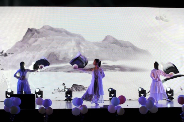 踏著動感的節拍,演員們先后閃亮登場,舞蹈串燒,古箏獨奏《戰臺風》,舞蹈《寄明月》、詩歌朗誦《少年中國說》,鋼琴獨奏、二重唱《飛云之上》等輪番登場,或輕快悠揚,或豪邁奔放,風格各異,變幻多姿。拉丁舞《卷珠簾》憑借其動感的曲調帶動起觀眾火熱的心,舞蹈《書簡舞》、《熏香》、《街舞串燒》的精彩表演也將晚會氣氛一次又一次推向高潮。同學們揮舞手中的熒光棒,場內氣氛高漲。由學生自編自導的相聲《戲精》引得觀眾爆笑連連。許多班級的同學還紛紛自發地為表演的同學們送上鮮花以表達欣賞。