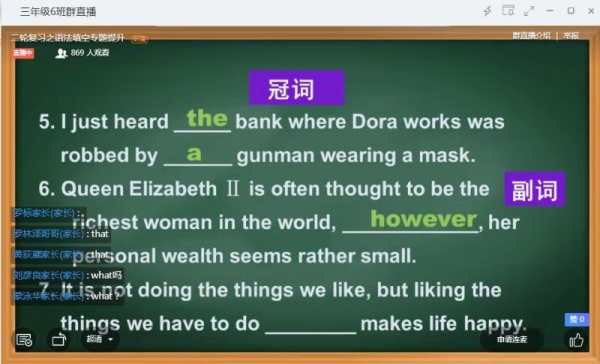 高三年級因高考日近,普遍采用了直播方式。“第一次直播,感覺同學們都很認真啊。”曹令妮老師為高三同學認真的學習態度點贊。從2月10日開始學習之初,高三年級師生保持從從早上7:25分到晚上22:10分的正常教學秩序,毫不停歇的奮戰2020年高考。高一高二老師也創造條件上班會課,傾情盡力為學生們答疑解惑。心理老師為同學們呈上化解負面情緒的良方,幫助同學們克服居家學習的焦慮與不安。學校管理團隊、教務處、技術保障部門都隨時在線,為桂山線上學習保駕護航。