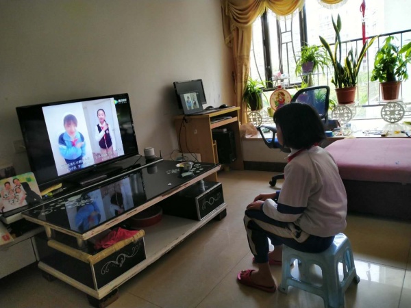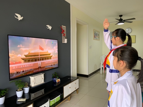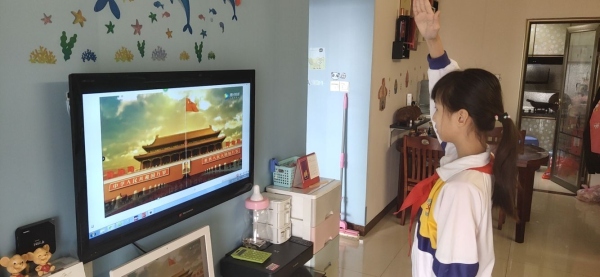 按照學校的傳統,每周一會舉行全校集會,舉行升旗儀式。因為延遲開學,南朗小學以“空中課堂”的方式進行周一的升旗儀式和主題班隊會活動,全校師生在家通過網絡的方式,通過電腦、手機等終端進行線上觀看,在線上參與。