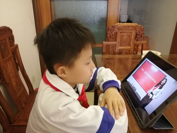 這是本學期第二次線上升旗儀式和主題班會活動,本次班會的主題是《致敬,感動中國的逆行者》。首先進行了升旗儀式;接著,學生代表進行主題為《向平凡的英雄致敬》的國旗下講話;然后,老師和同學們打開鏈接,通過電腦、手機等終端,線上觀看主題班隊會《致敬,感動中國的逆行者》。
